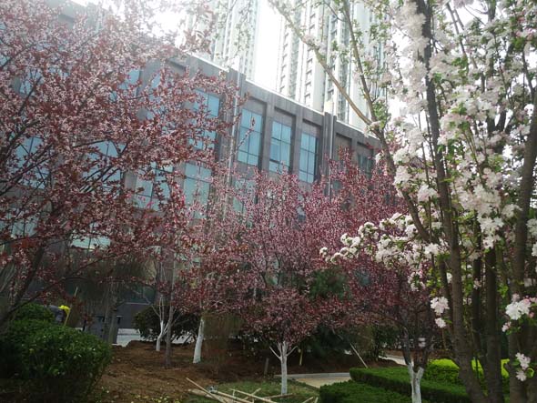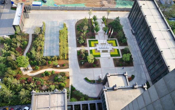 向日葵廣告為客戶設(shè)計的公司院內(nèi)景觀植物綠化三維效果圖(鳥瞰圖)。